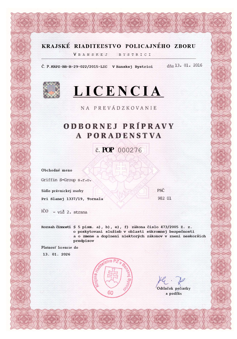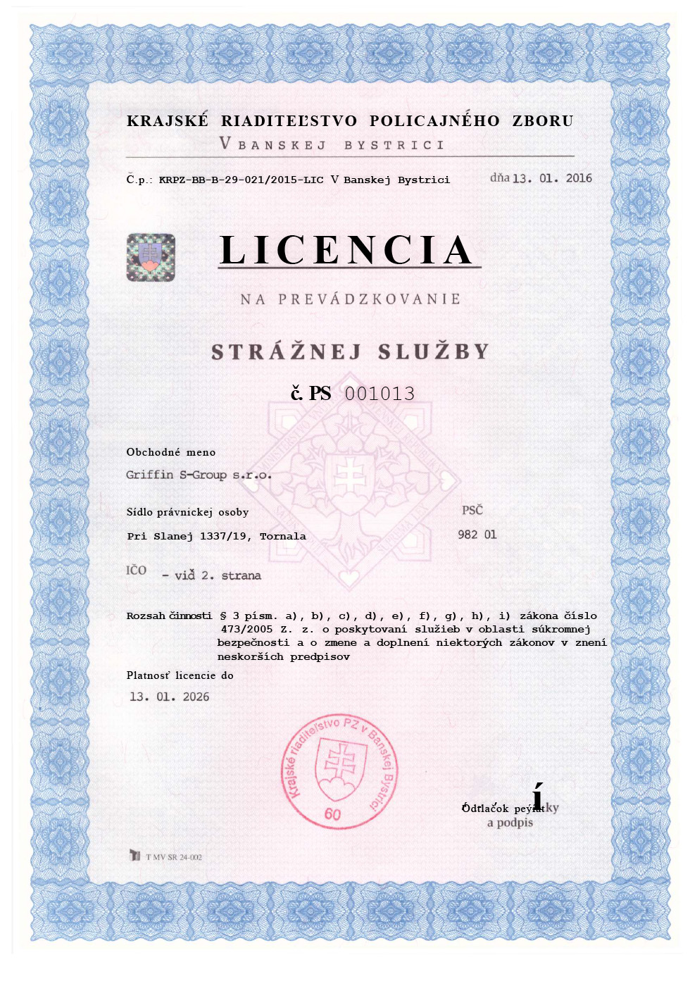 Sídlo spoločnosti: