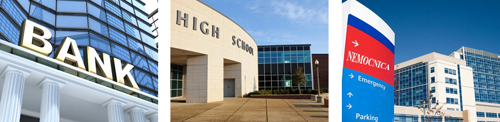Finančné inštitúcie, nemocničné a vzdelávacie zariadenia